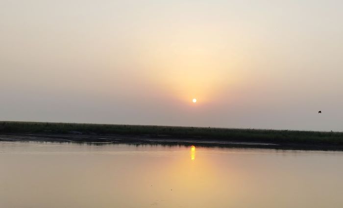 بہت دور کہیں کسی گھنیر درختوں کے جھنڈ کے پیچھے غروب شام کا نارنگی سورج تمام دن کی مسافت طے کر کے پانیوں کی تہہ میں سونے لگا ہے۔۔اور کرنوں کے زرد تھال کے نیلے پانی میں غوطہ زن ہونے سے پانی میں اس تھکے ماندے سورج کی سستیاں گھل مل گئي ہیں جیسے جذ بوں کے بے قابو ہونے سے پرانے وقت کے دوست کے خط پر نئے دور کے غموں کی اشک باری سے روشنائی پھیل جاۓ ۔۔۔اور نکتہ دھبہ بن جاۓ